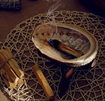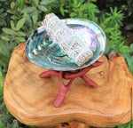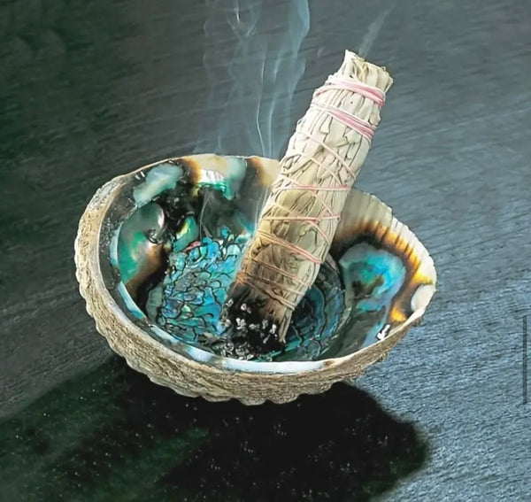 Natural green abalone shells for sage smudging, burning incense . Incense holder