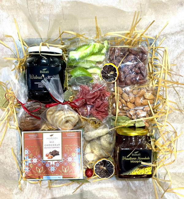 6 different bags of natural Cyprus teas, 1 traditional spoon sweet, 2 homemade marmalades