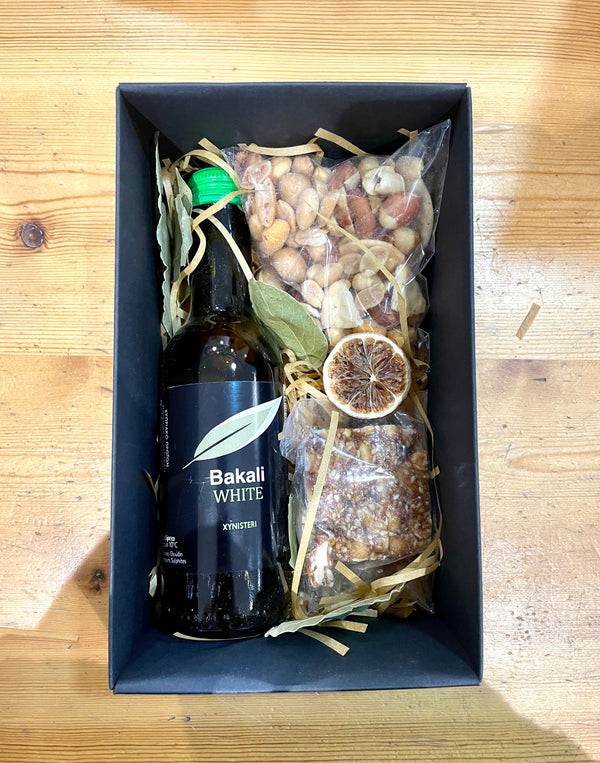 White local Cyprus wine and 2 bags of snacks