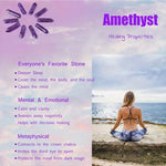 Amethyst is a powerful and protective stone.  It guards against psychic attack, transmuting the energy into love and protecting the wearer from all types of harm, including geopathic or electromagnetic stress and ill wishes from others.  Amethyst is a natural tranquiliser, it relieves stress and strain, soothes irritability, balances mood swings, dispels anger, rage, fear and anxiety.  Alleviates sadness and grief, and dissolves negativity.  Amethyst activates spiritual awareness, opens intuition and enhances psychic abilities.  It has strong healing and cleansing powers.  Amethyst encourages sobriety, having a sobering effect on overindulgence of alcohol, drugs or other addictions.  It calms and stimulates the mind, helping you become more focused, enhancing memory and improving motivation.  Amethyst assists in remembering and understanding dreams.  It relieves insomnia.  Encourages selflessness and spiritual wisdom.