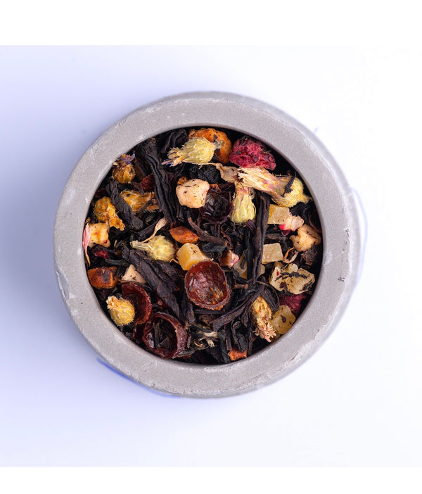 Συστατικά: Μαύρο τσάι, μήλο, μάνγκο, άγριο τριαντάφυλλο, ιβίσκος λουλούδι, φραγκοστάφυλο, βατόμουρο
