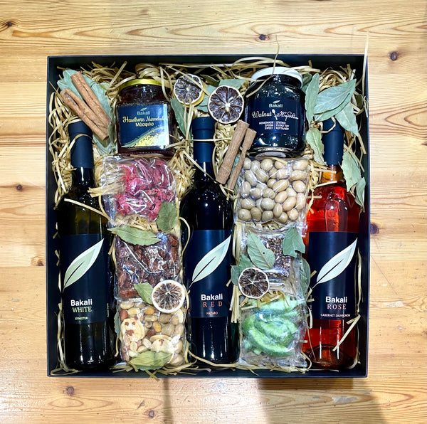 Red Cyprus wine, white Cyprus wine, rose Cyprus wine, homemade hawthorn marmalade, traditional spoon sweet walnut, Pastelaki, mix nuts, mandola almond, banana cracker, hibiscus dry fruit, dry grape,